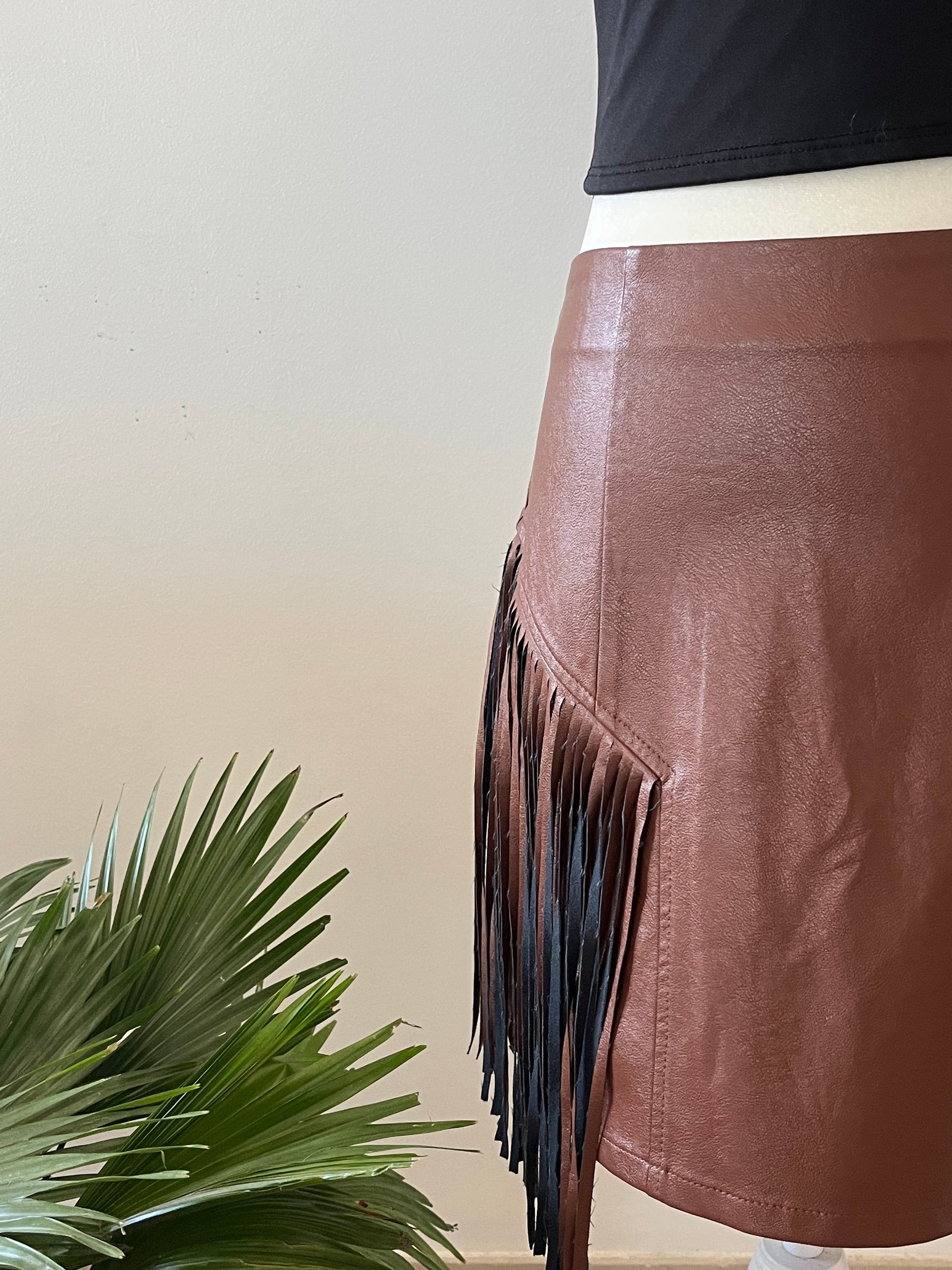 ¡Lleva tu estilo al siguiente nivel con nuestra Falda Nube! Esta falda de cuerina en tono café cuenta con elegantes detalles negros que harán que resaltes en cualquier ocasión. Combínala con tus tops favoritos y crea looks únicos y sofisticados. ¡No podrás resistirte a su encanto!