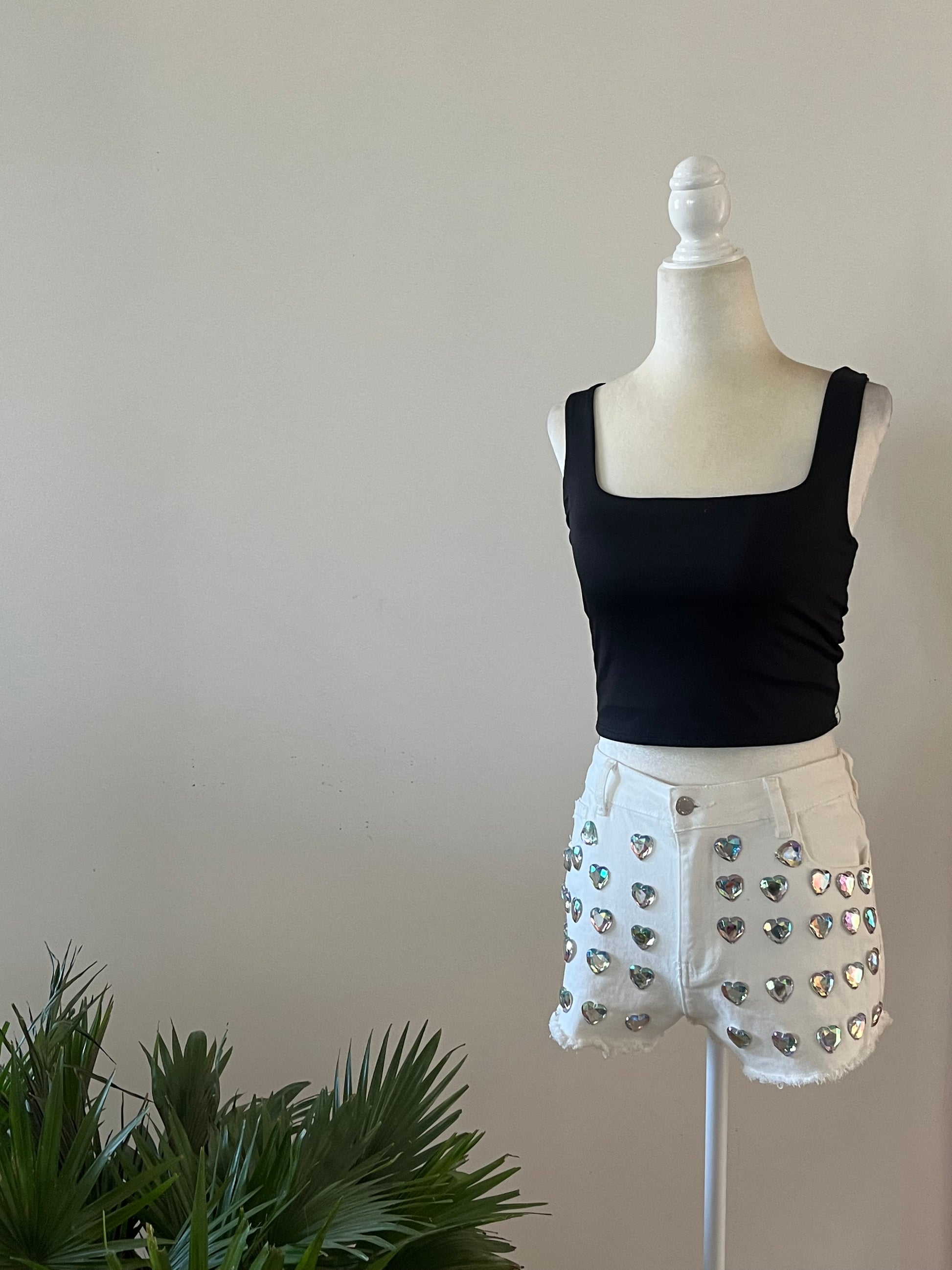 Nunca pasa de moda con nuestro Short, tejido en tela de jean de la más alta calidad y adornado con gemas brillantes para un detalle único. Sientete comoda y elegante en cualquier ocasión. ¡Haz una declaración de estilo con nuestros shorts únicos!