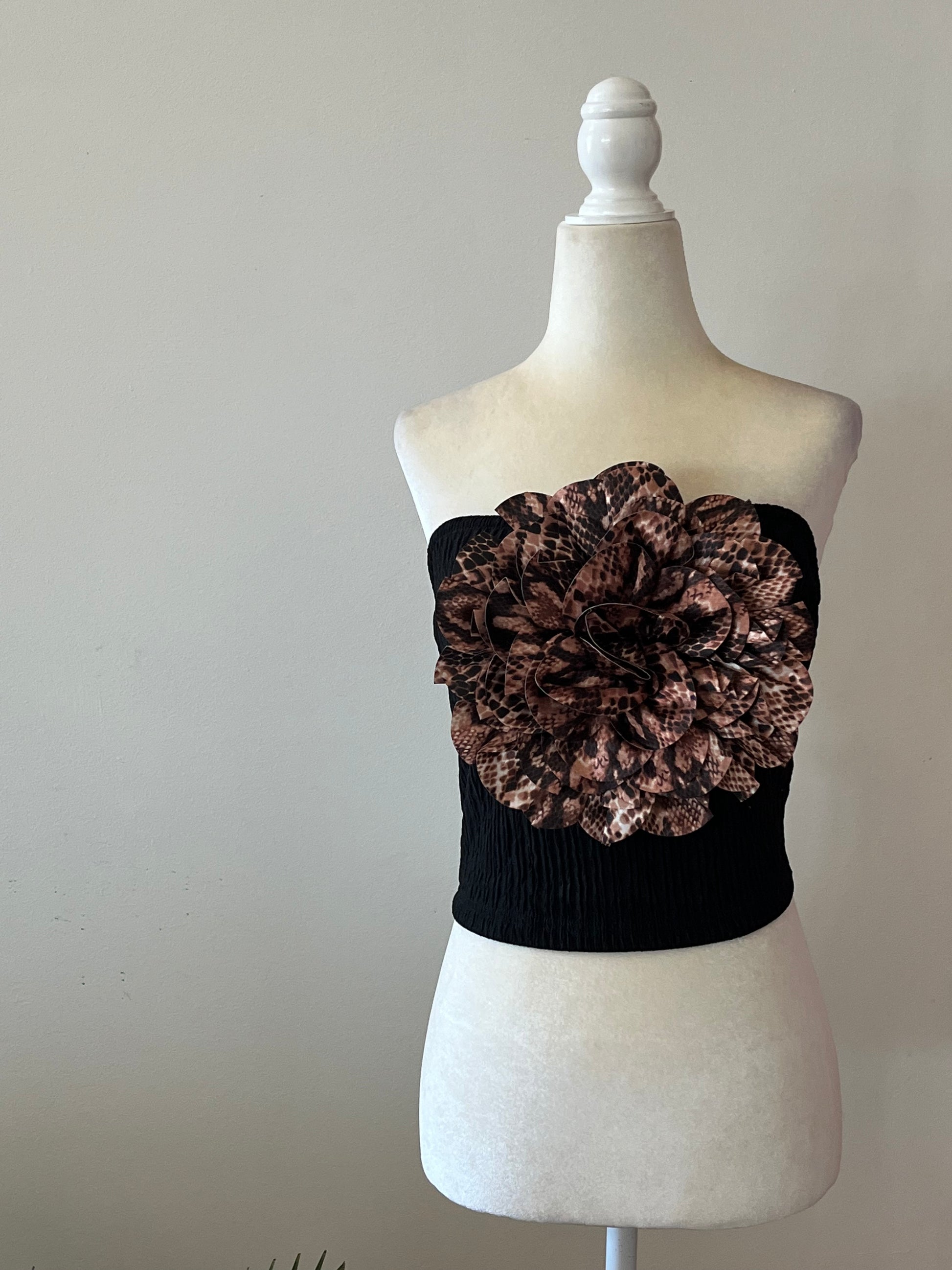 ¡Sé el centro de atención en la playa con el Top Beachy! Este top negro con textura presenta una hermosa flor en el centro con un estampado único. ¡Haz una declaración de moda y destaca en la arena con este top único!