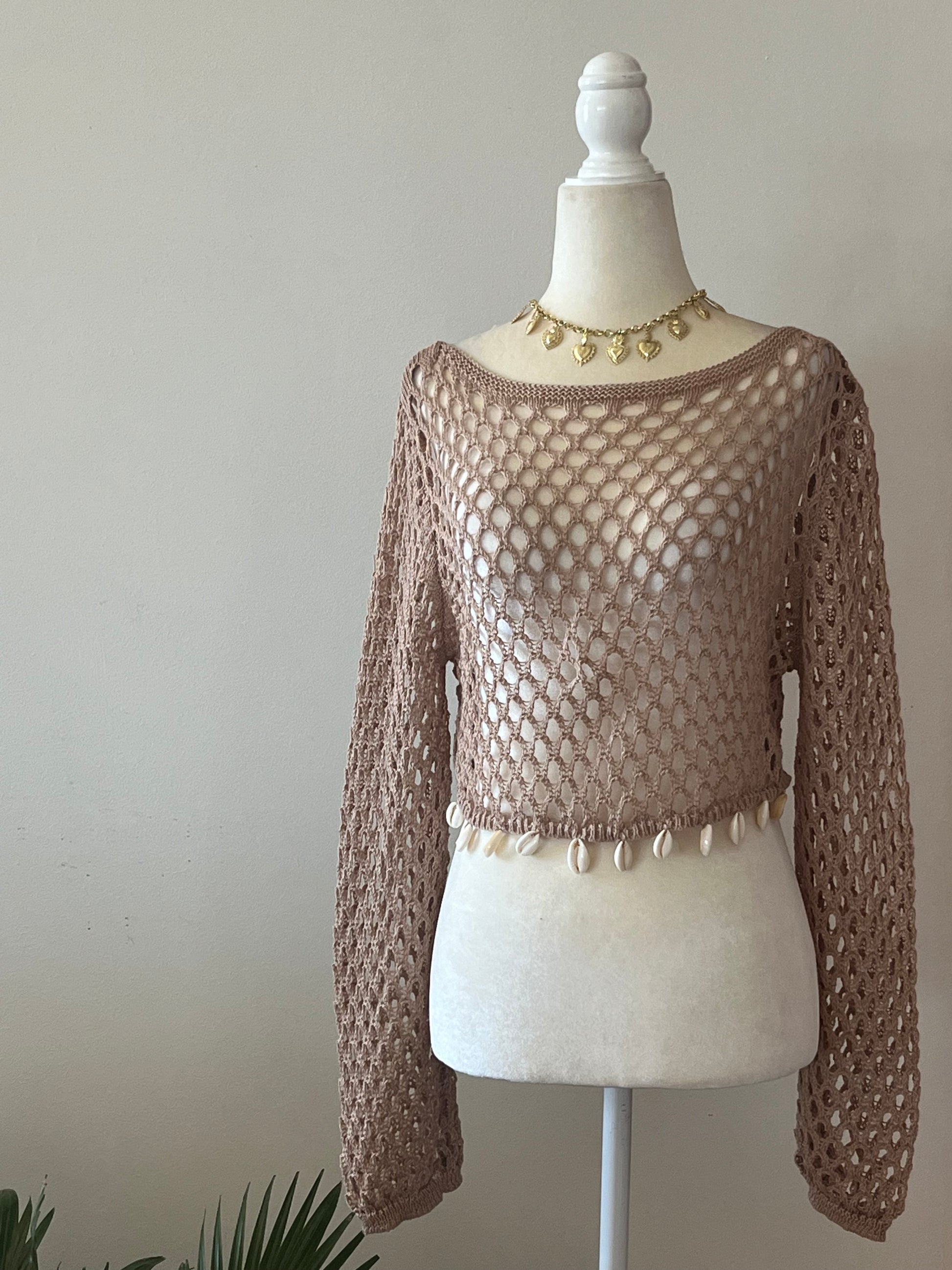 ¡Consigue un look playero y divertido con nuestro top Reef! Hecho de crochet y decorado con conchas, este top es perfecto para un día de sol en la playa. ¡Atrévete a ser diferente y añade un toque de playa a tu estilo con nuestro top Reef!